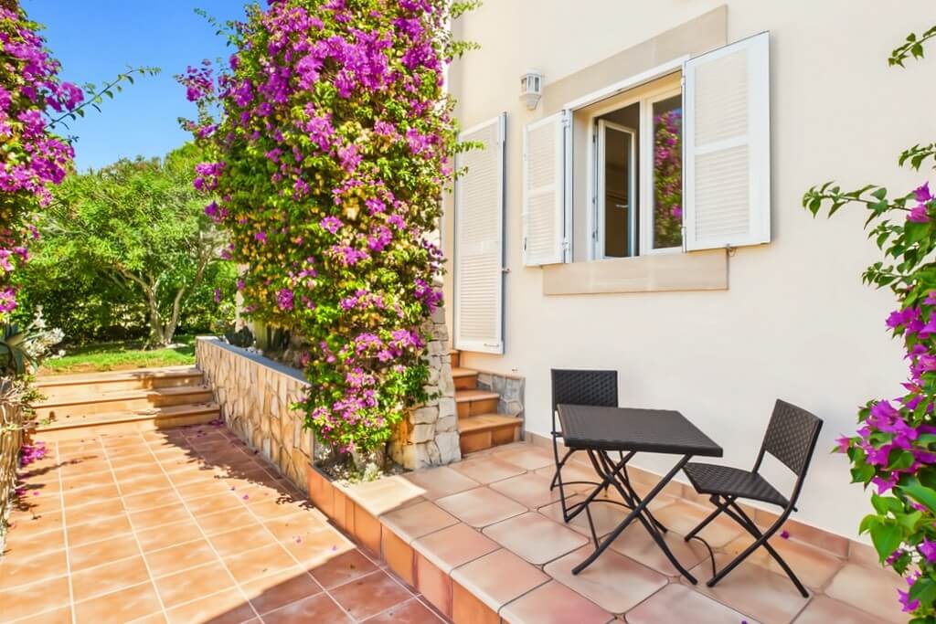 On the right wing of the house you’ll find three additional bedrooms, another bathroom, and a charming coffee terrace framed by Mallorcan bougainvillea – the perfect spot to enjoy Mediterranean life to the fullest.