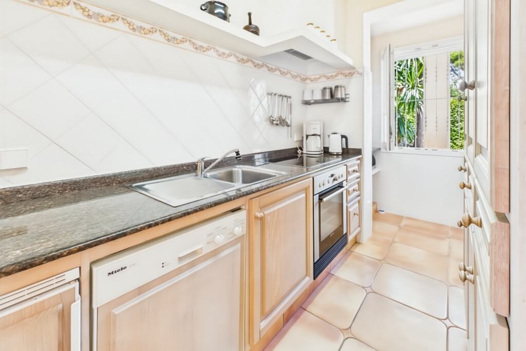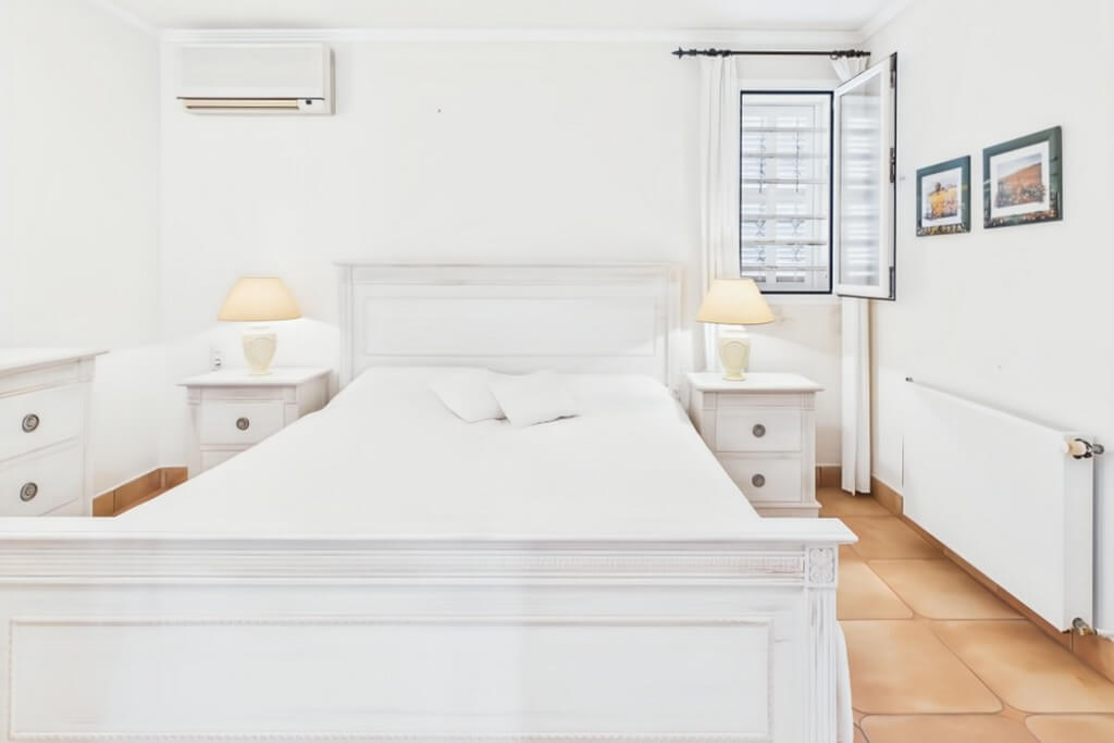 The highlight inside the villa is the light-flooded living and dining area with its large Mediterranean panoramic windows – offering views over the pool and out to the sea. The villa is inviting year-round: even lovers of cozy evenings by the fireplace will feel right at home. Enjoy your favorite Mallorcan wine or cocktail with loved ones, and feel free to ask us for wine highlights and top bodegas on the island.