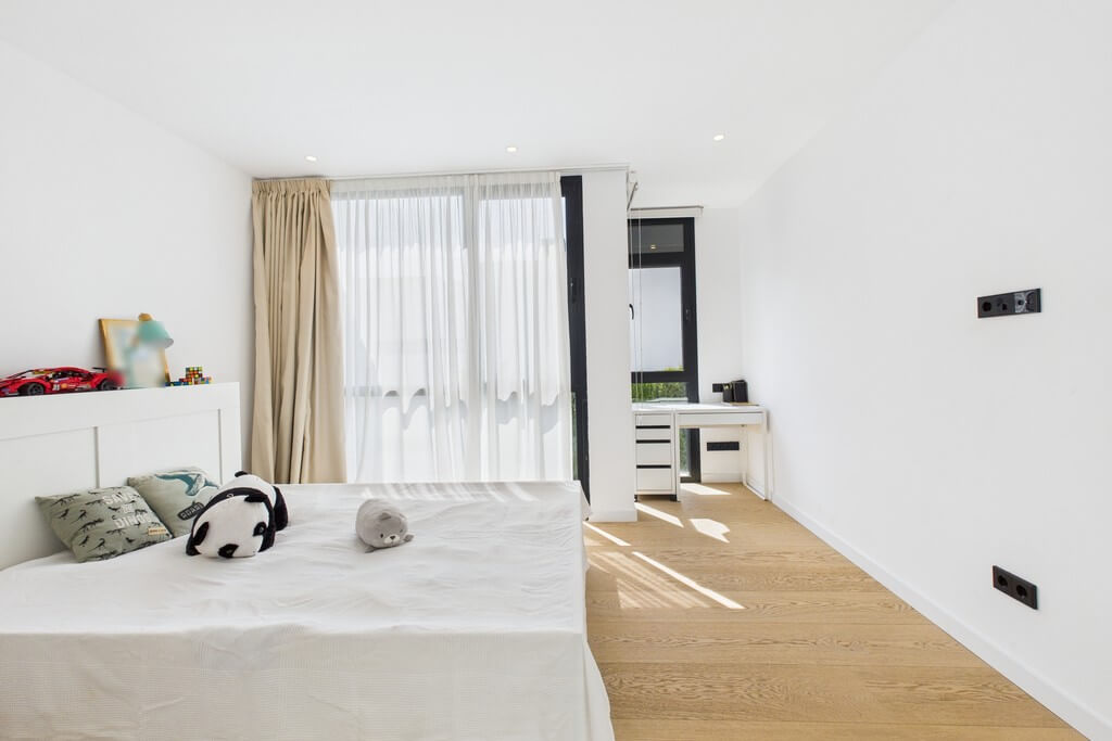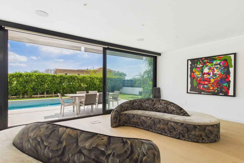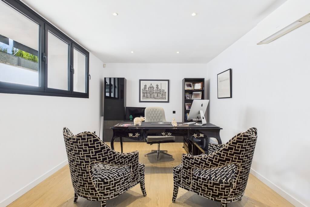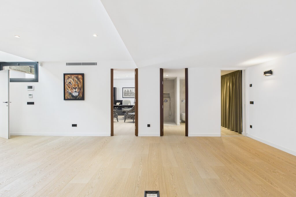 The lower level offers a second living room that can also be used as a home cinema or fitness area. It also houses a fifth bedroom, ideal as a home office